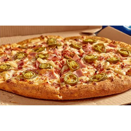 SALSA DE TOMATE, QUESO MOZZARELLA, QUESO GOUDA, JAMON, PIÑA, CHILES JALAPEÑOS