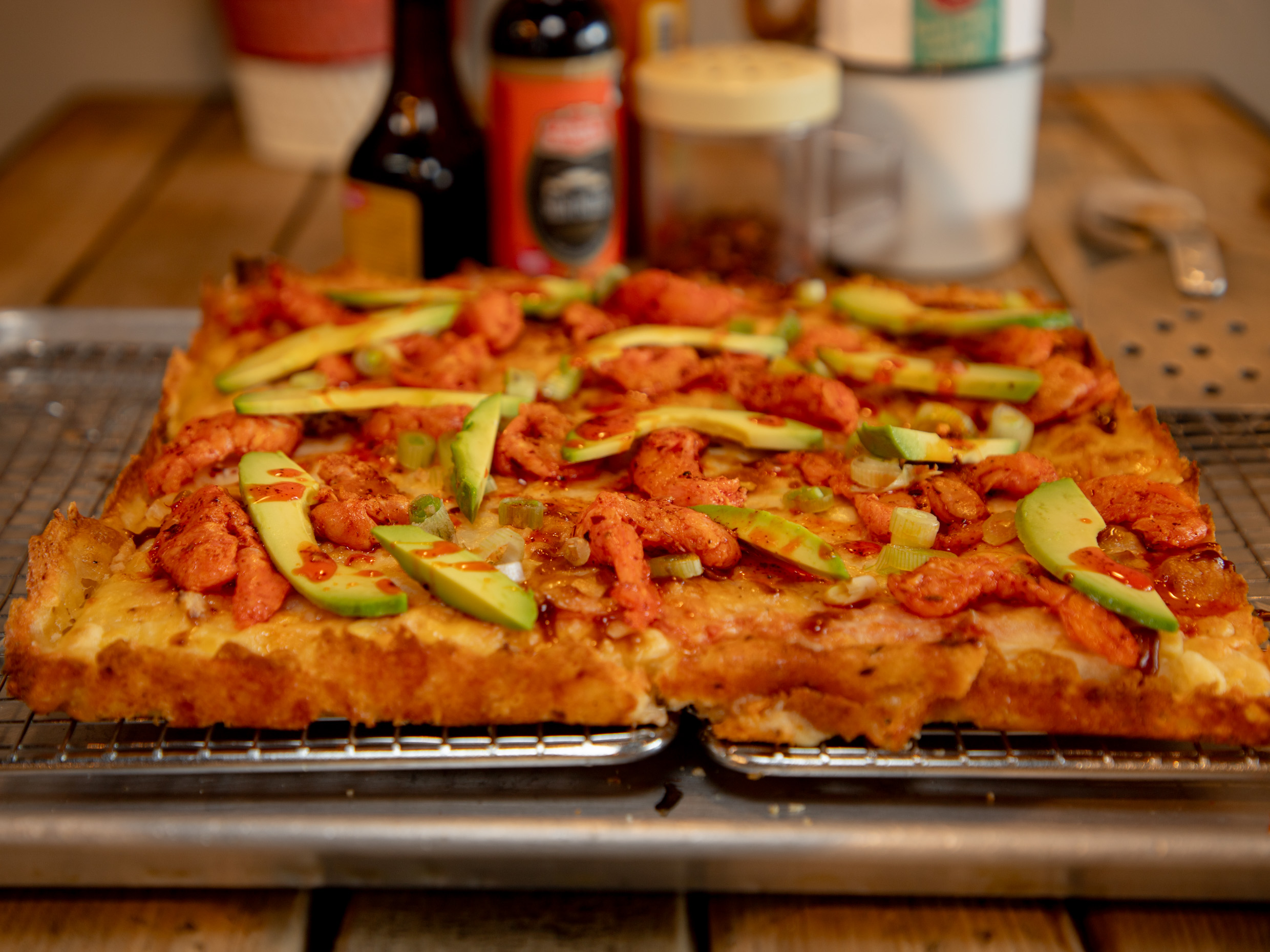 Pizza de Camarón y Aceite al Ajillo