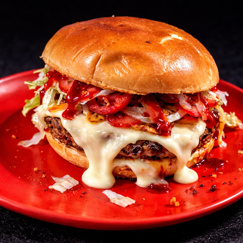 Suculenta carne bañada en salsa BBQ acomañada de queso Americano, quesillo, tocino crocante, Salchicha fritas, cebolla caramelizada, jitomate, lechuga y aderezos.