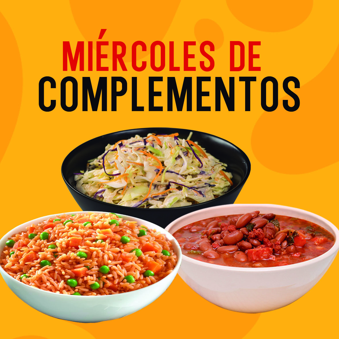 1 pollo (8 piezas) . Incluye 8 tortillas, salsa, chiles y cebollas. 1 complemento a elegir.