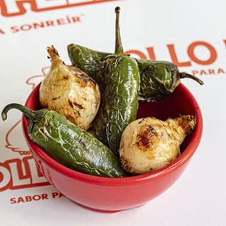 Costilla de cerdo, 1 orden de 8 tortillas, chiles y cebollas. Orden para 2 personas.