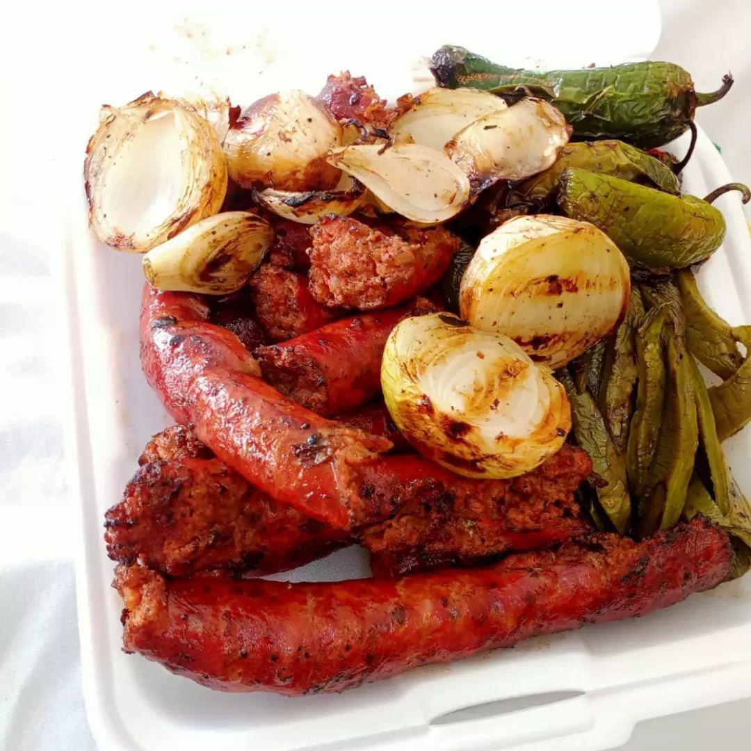 1 kg de longaniza** asada acompañada con una orden de nopales (3 pzs), cebollitas asadas (4 pzs), chile asado (4 pzs) y salsa verde.