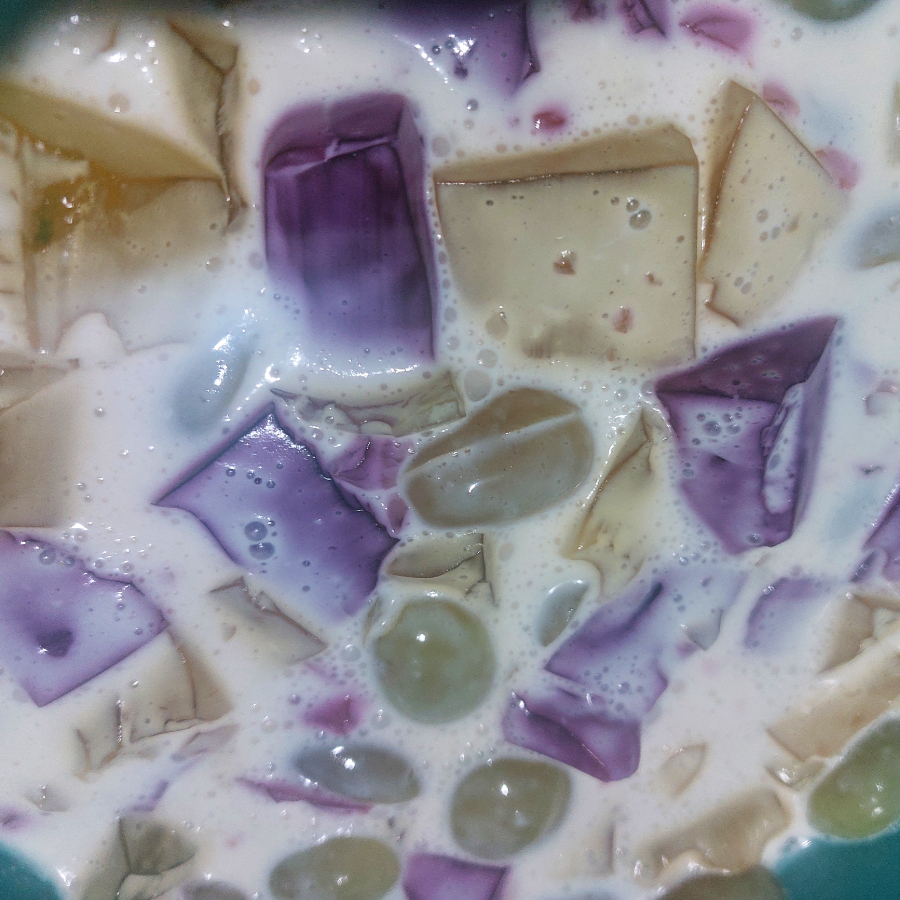 Gelatina de sabores con uvas acompañada de nuestra crema especial
