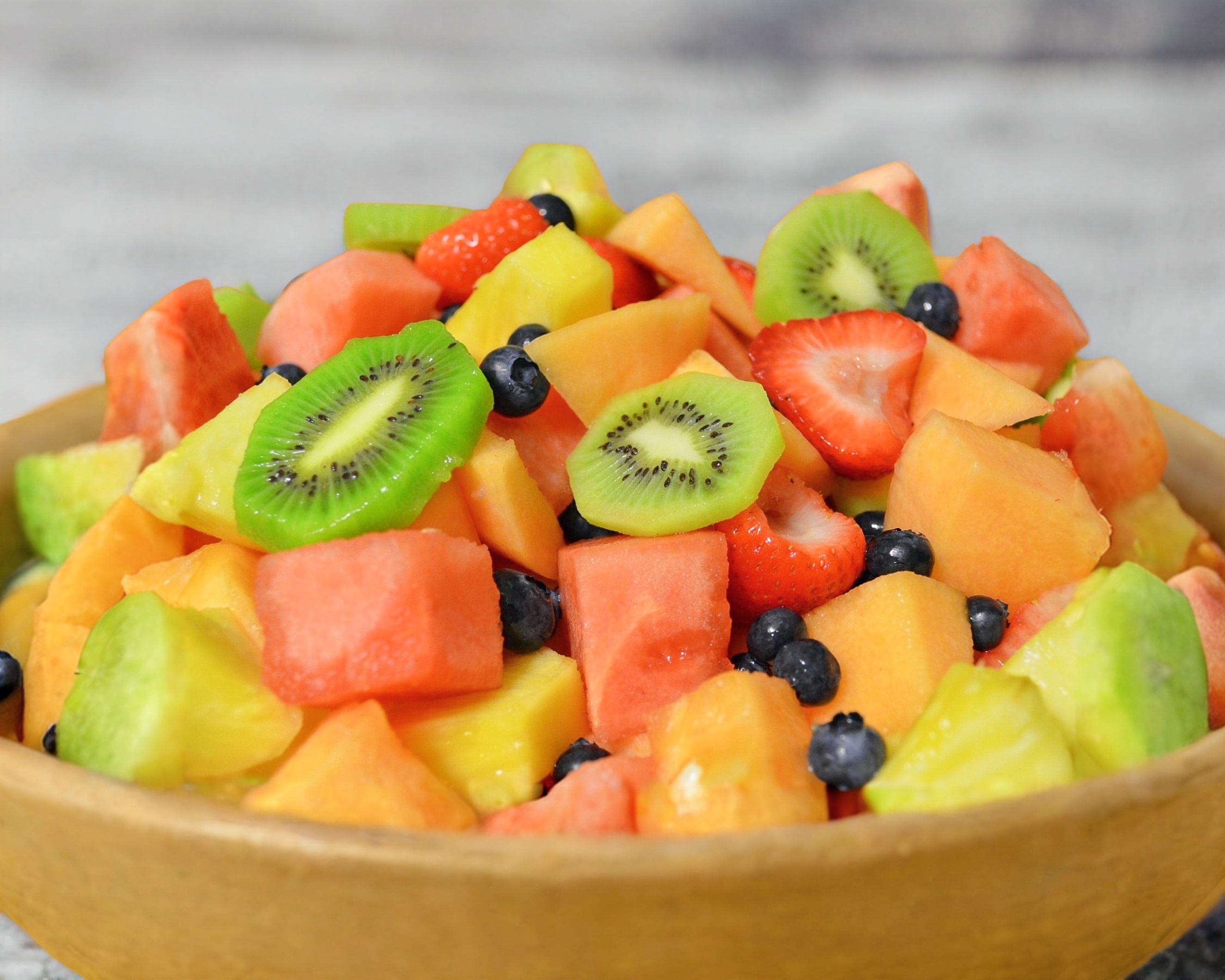 Fruta picada entrocitos. Papaya, plátano y manzana, endulzada con miel y un toque de granola