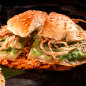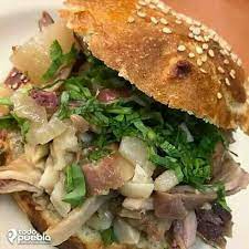 Cemita tradicional poblana rellena de cabeza, un antojito poblano inigualable.