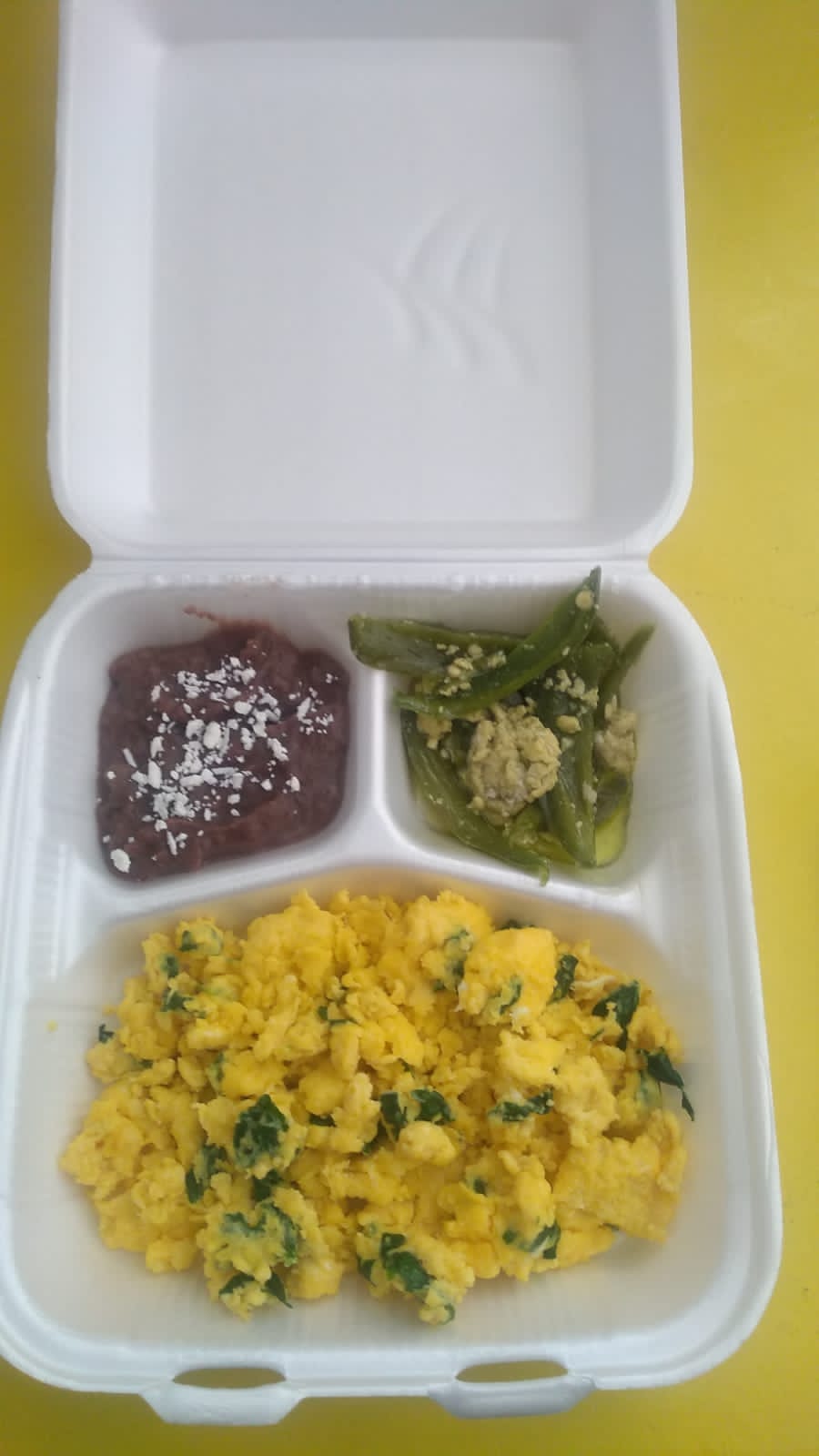 Orden de huevos preparados a tu gusto, acompañados de frijoles, aguacate, picante y una torta.