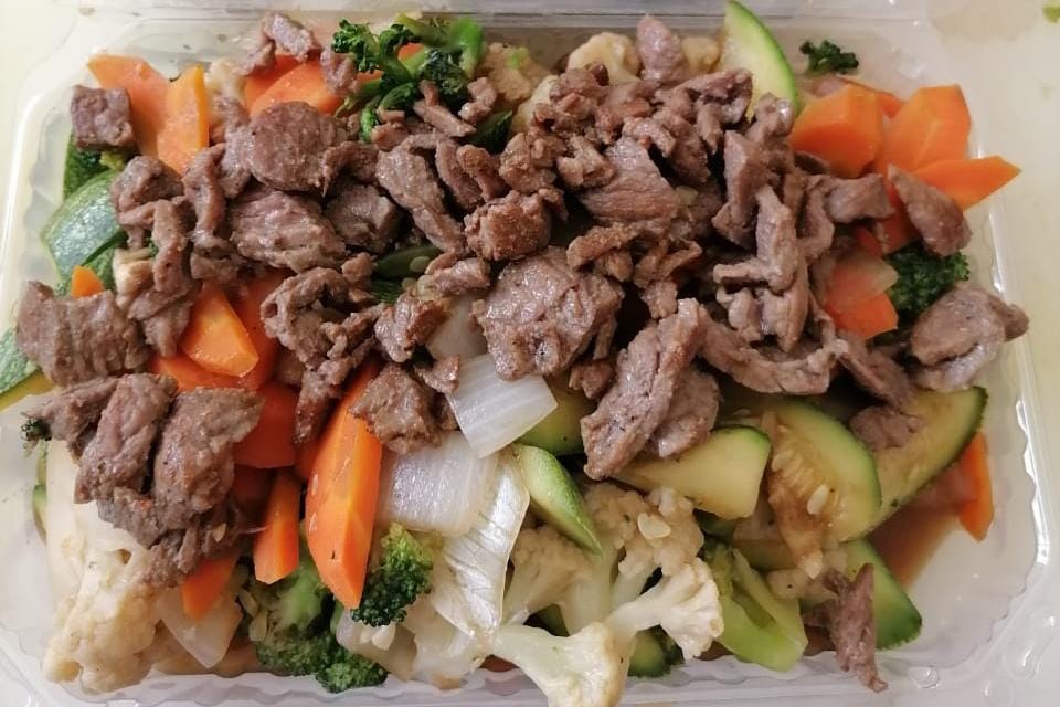 Tierna arrachera a la plancha con verduras frescas y un toque oriental.
