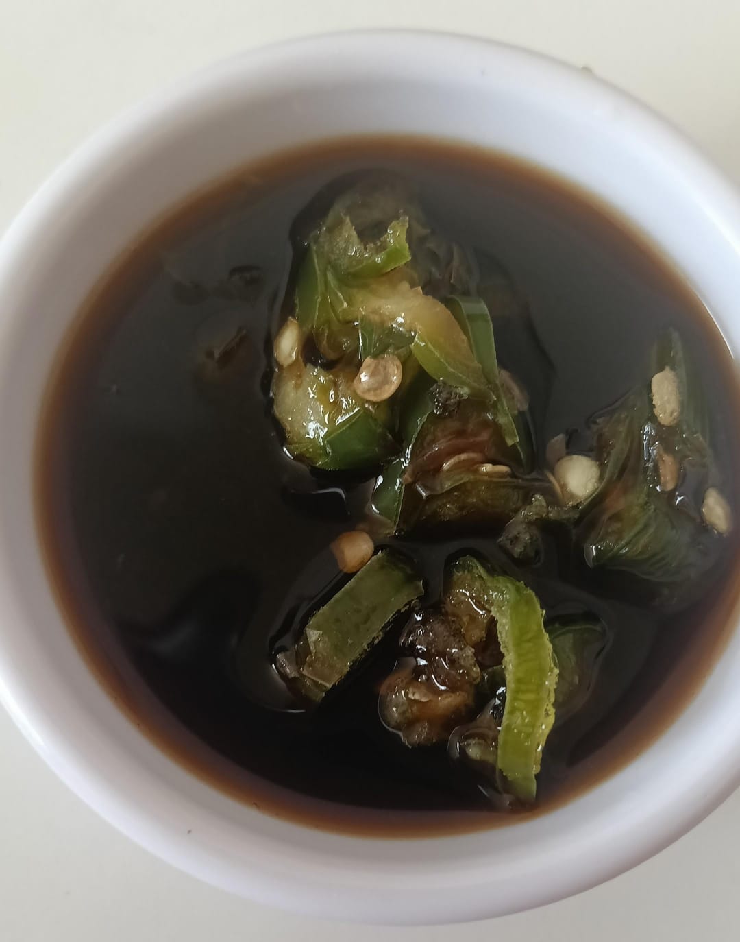 Relleno de pepino, envuelto en alga y ajonjolí.