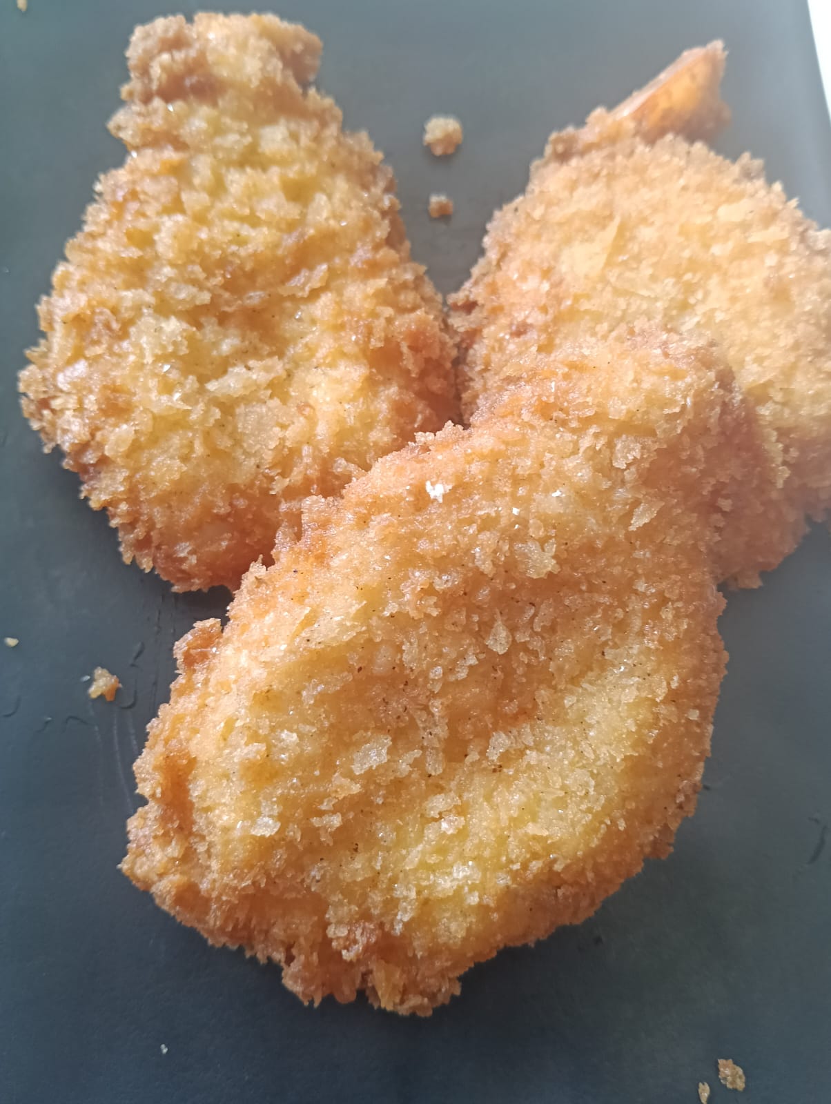Rodajas de plátano empanizado (8 piezas), una opción dulce y crujiente para acompañar.