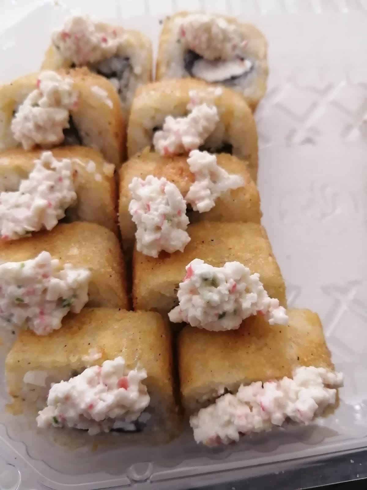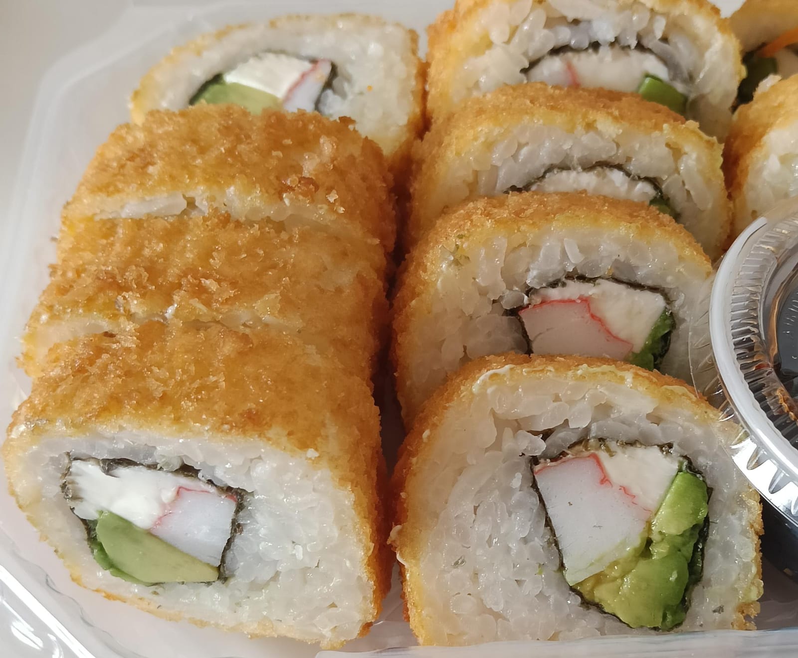 Surimi, aguacate y Philadelphia envueltos en un crujiente empanizado.