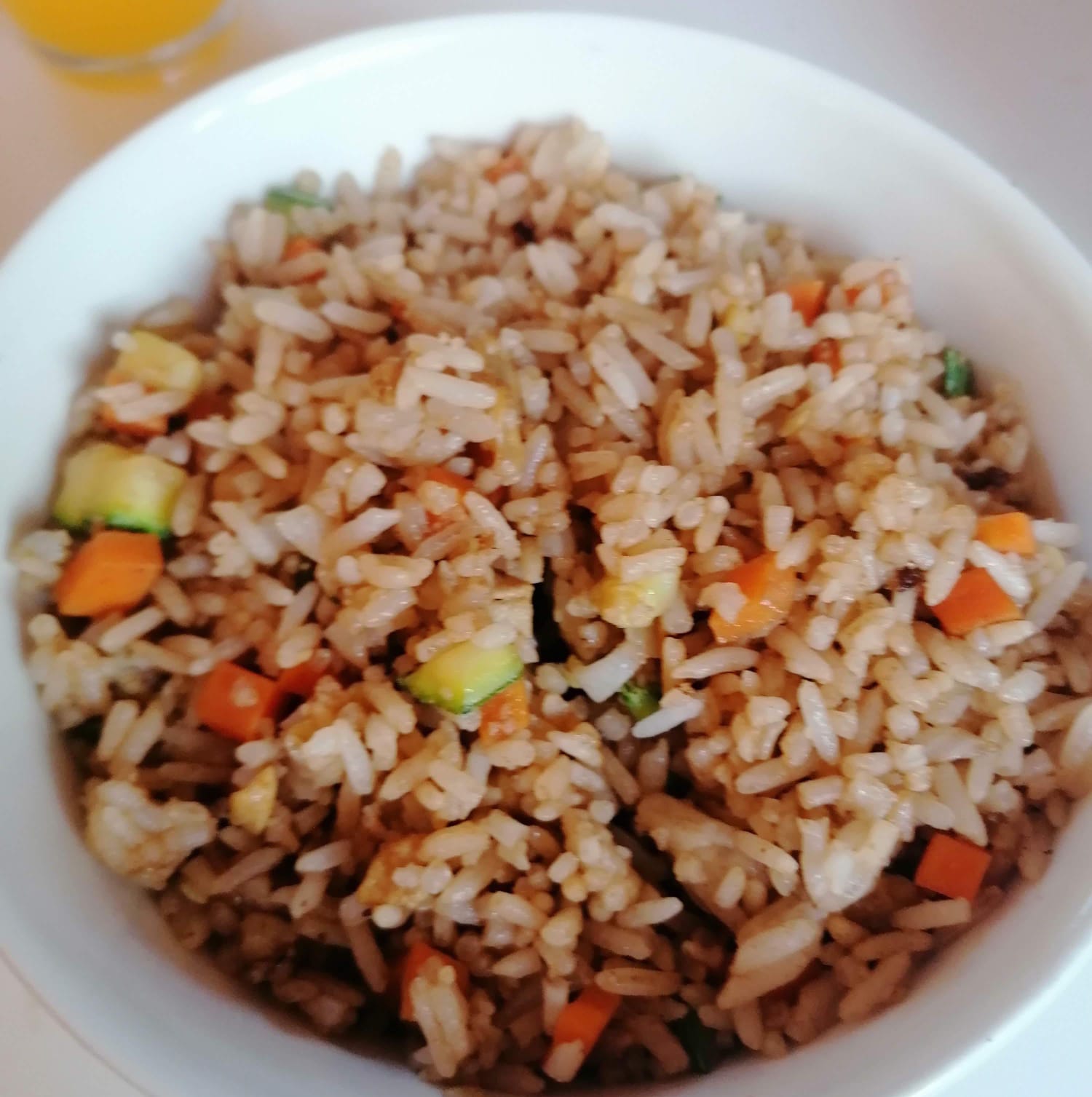 Arroz frito con verduras y pollo, una opción ligera y deliciosa.