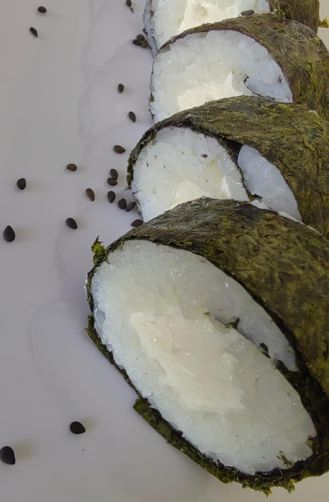 Solo con queso Philadelphia, envuelto en alga y ajonjolí.