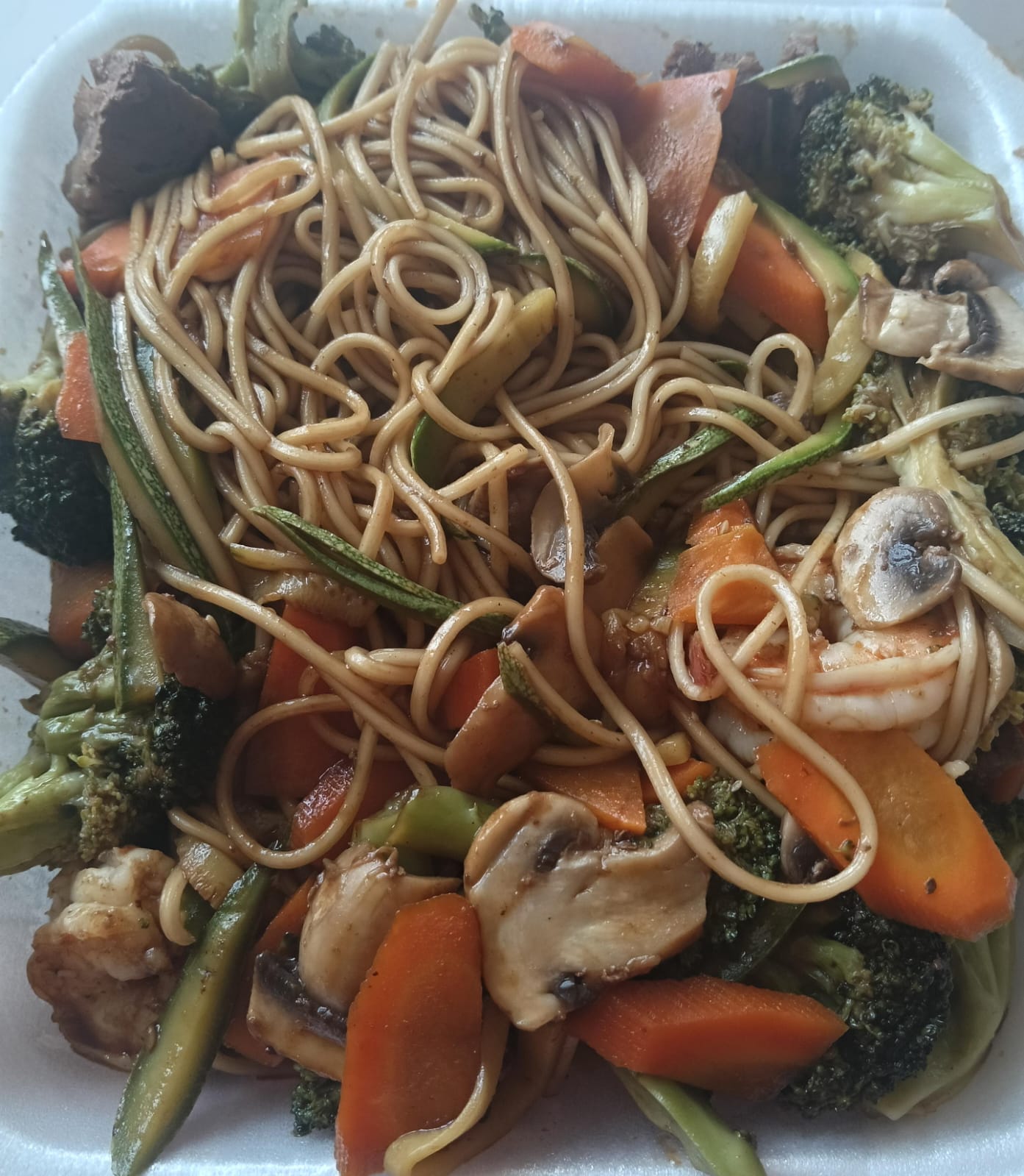 Clásica pasta japonesa con arrachera, camarón y verduras en salsa agridulce, una combinación irresistible.
