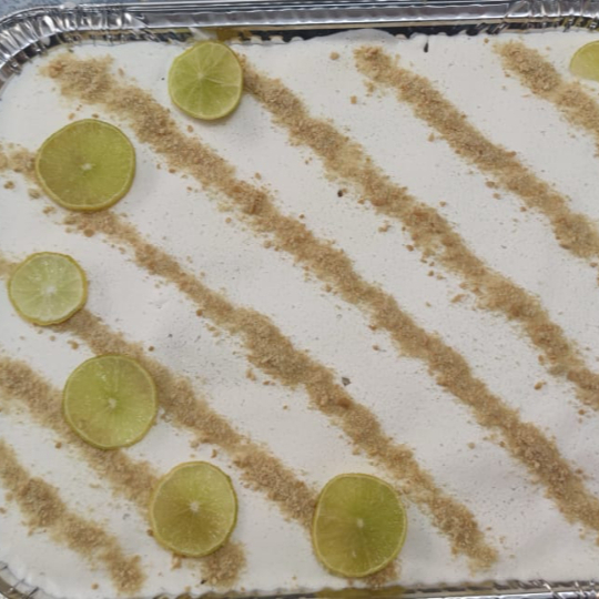 Crema de limón intercalado con galletas de vainilla.