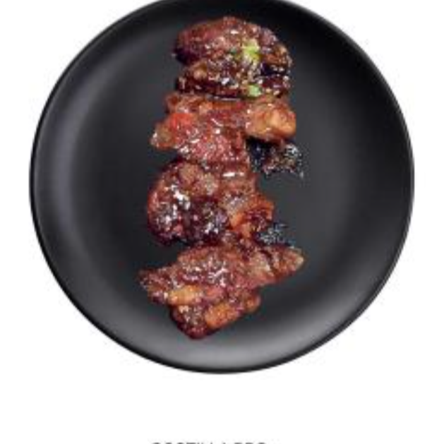 300 g de fideo salteado al wok, sin fondo, 5 pzas de costillas a la BBQ con brócoli, apio, zanahoria, calabaza y cebolla.