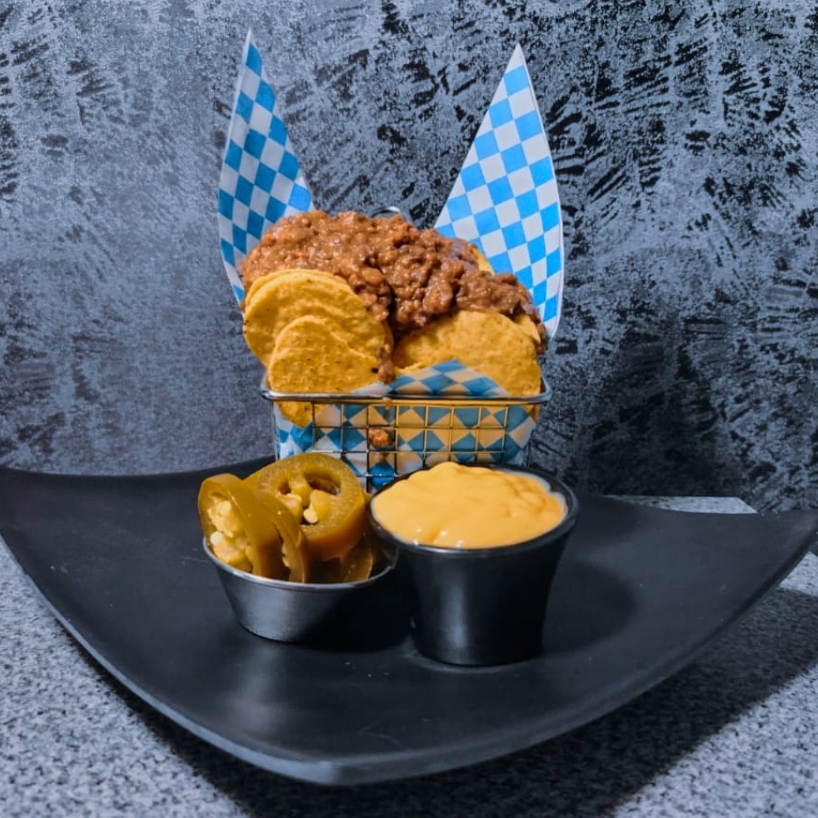 250 gr de tostitos. Acompañados con frijoles refritos con chorizo queso amarillo derretido y rajas en vinagre rodajas.