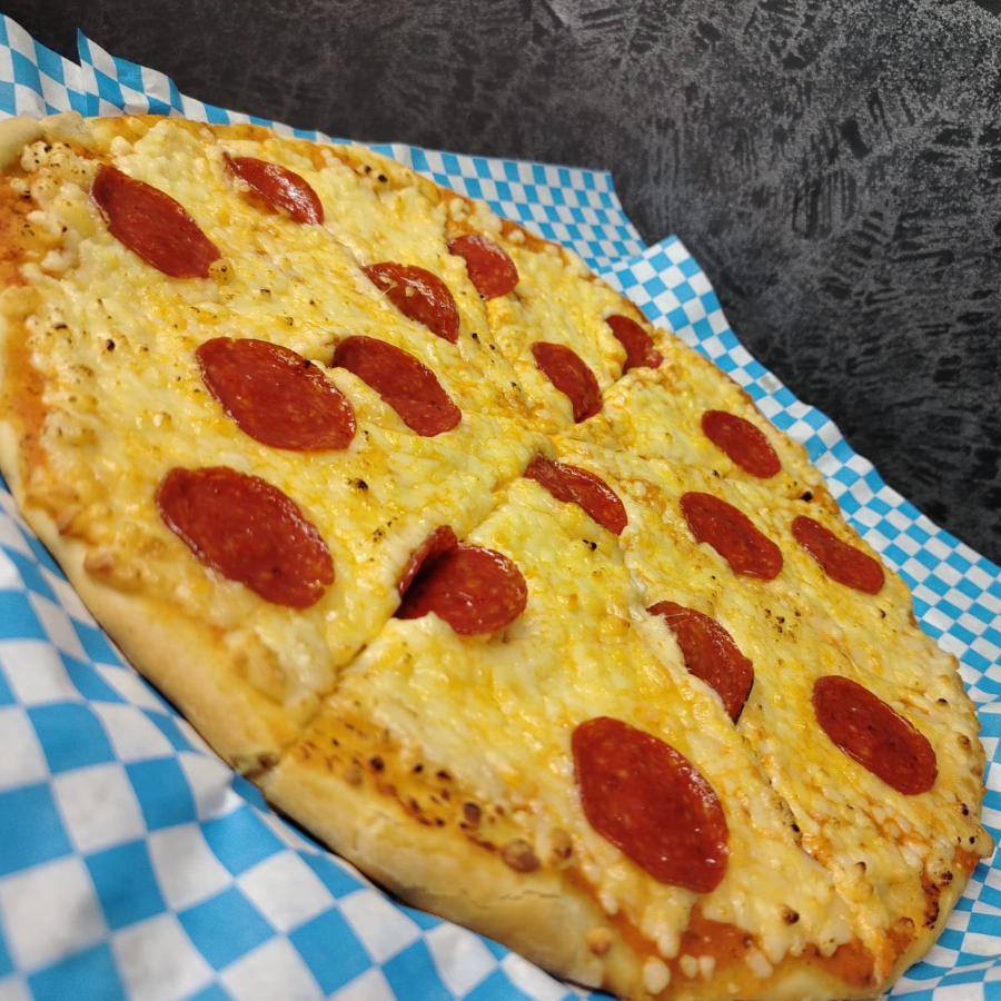 35 cm Artesanal, salsa pomodoro, queso mozarella y peperoni.