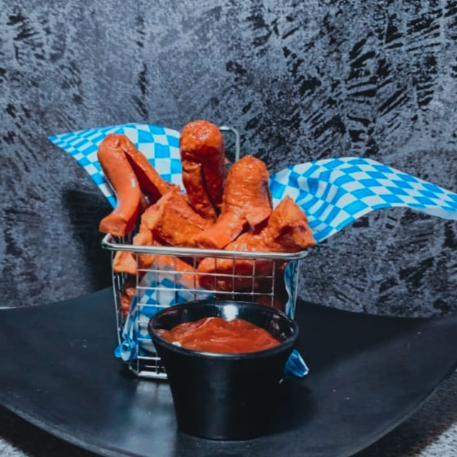 6 pz de salchichas en forma de salchupulpos. Acompañadas con catsup, valentina y queso amarillo fundido.