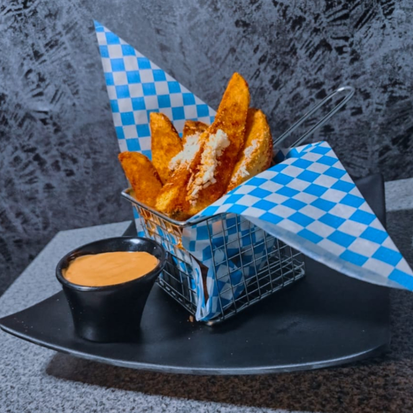 350 gr. de papas gajo. Acpmpañadas de dip de ranch y dip de chipotle.