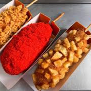 1/2 Salchicha y 1/2 queso manchego. marinada con chettos fleming hot, o Ramen.
