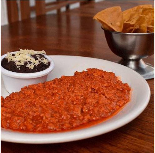 Deliciosa salsa roja con huevo acompañado de frijoles.