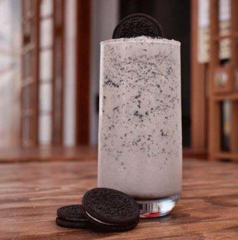 Delicioso licuado de leche con helado oreo y galleta oreo.