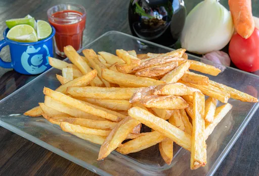 Deliciosas y crujientes papas a la francesa 100% naturales, acompañadas de salsa catsup.