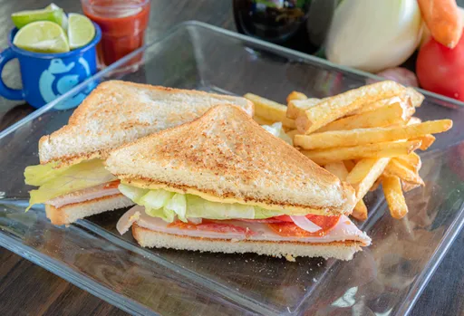 Pan dorado, jamón, salami, pepperoni, lechuga, jitomate, cebolla, queso amarillo, papas fritas, cátsup, mostaza y salsa picante.