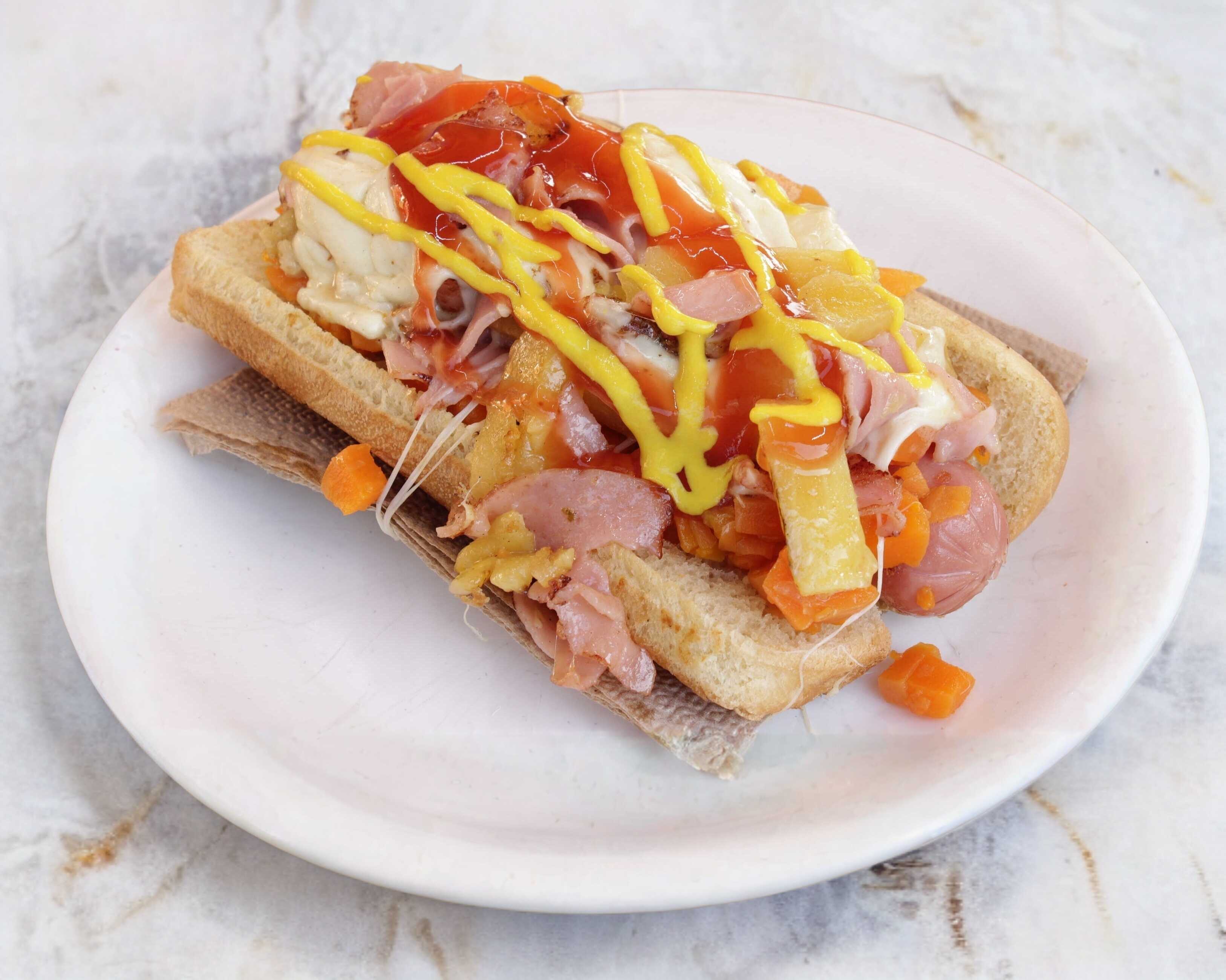 Carne, jamón, piña, quesillo, salchicha y tocino.