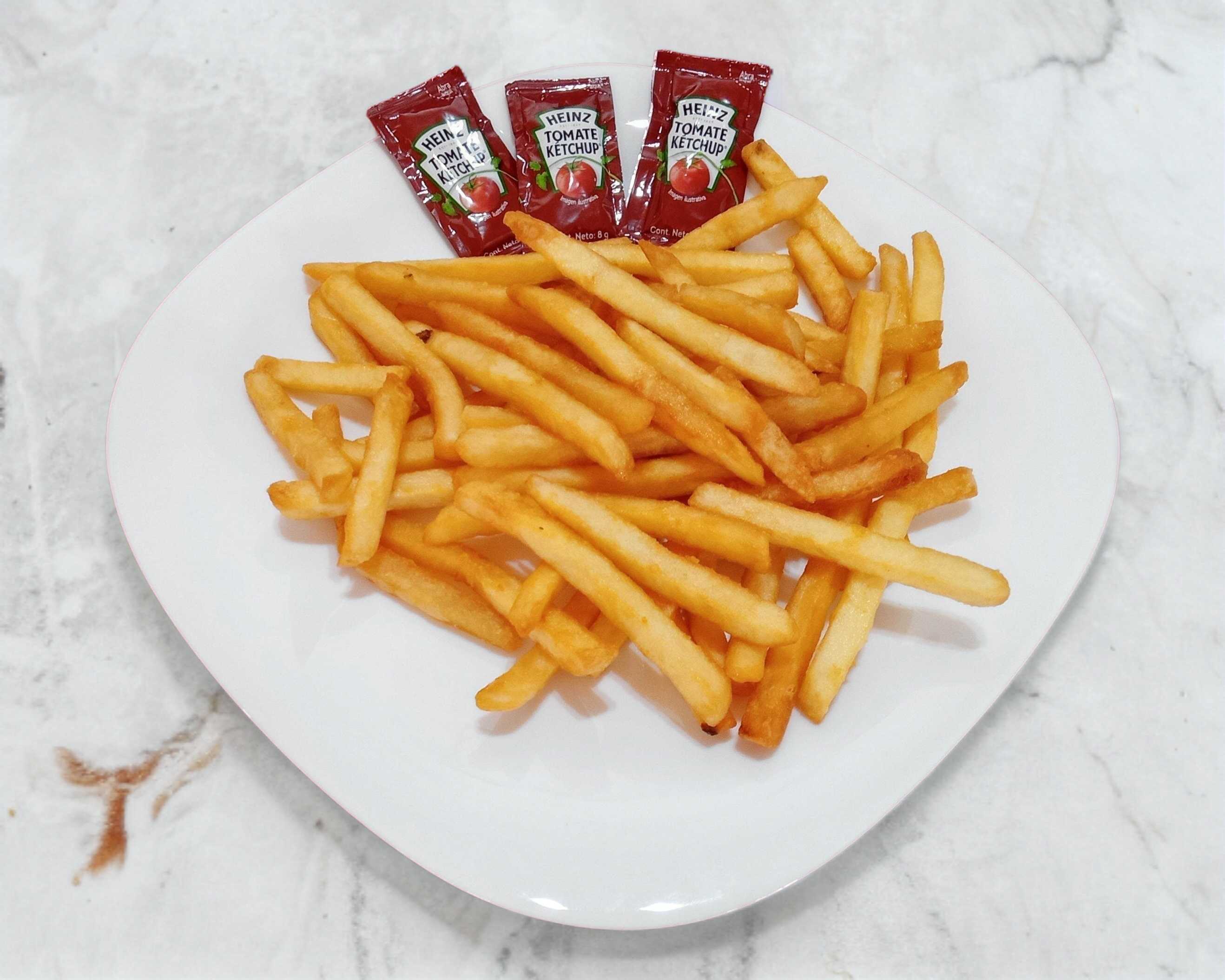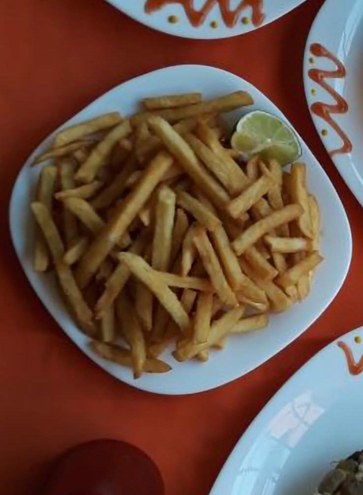 Dos hamburguesas tradicionales con una porción de papas cada una