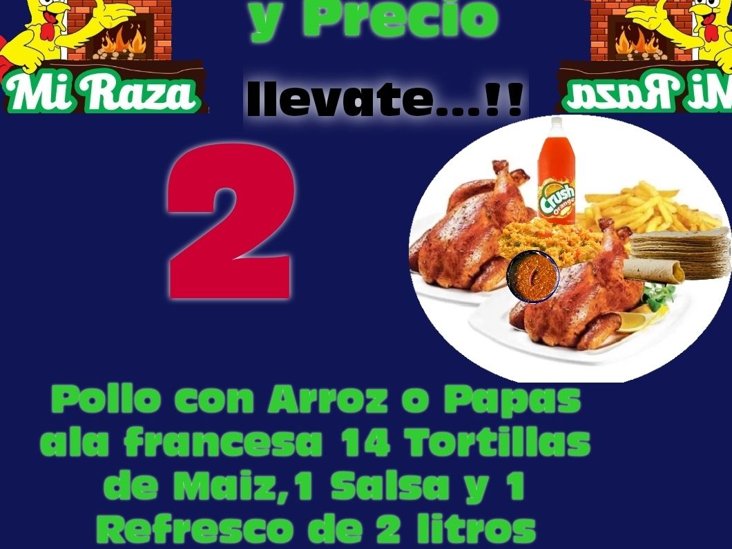 2 pollo + Acompañamientos , Salsas 12 Tortitas y Refresco 2lt