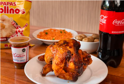 1 Pollo rostizado tradicional o ranchero, 1 bolsa de papas molinos, 1 resfresco familiar más 1 lata de chiles.