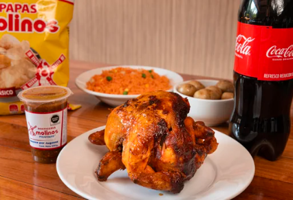 1 Pollo rostizado tradicional o ranchero, 1 bolsa de papas molinos, 1 refresco familiar más 1 lata de chiles.