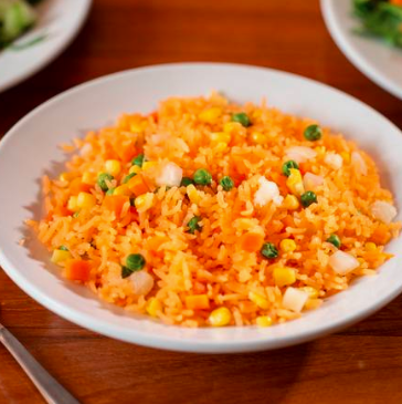 Pollo rostizado o ranchero, arroz rojo 400 g, 20 cebollas cambray más refresco familiar.
