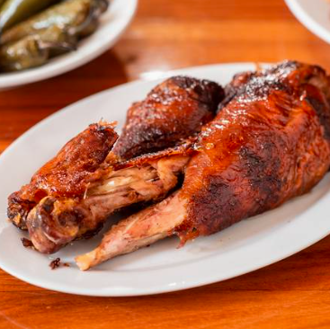 1 Pollo rostizado o ranchero, 1 complemento, 5 pescuezos, 1 bolsa totopos, 1 vaso de salsa y 1 refresco familiar.