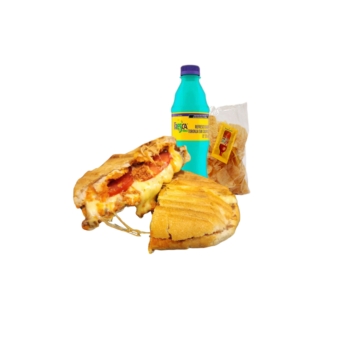 Torta planchada dechorizo, queso manchego, frijoles refritos caseros, mayonesa, jitomate, aguacate y picante (salsa jalapeño o salsa chipotle) acompañada de una Frezca sin azúcar de 355 ml y una bolsa de papitas tipo chip de 22 gr.