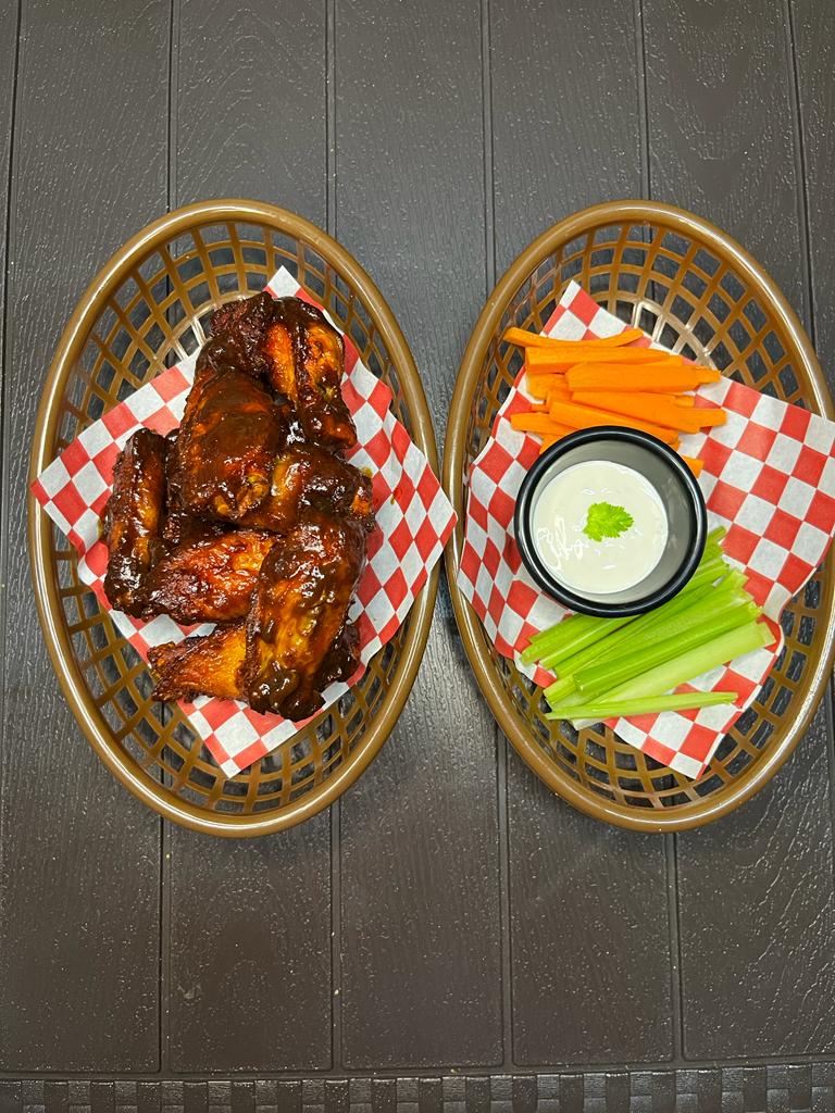 10 Piezas de alitas doradas, Incluye bastoncitos de zanahoria y apio.