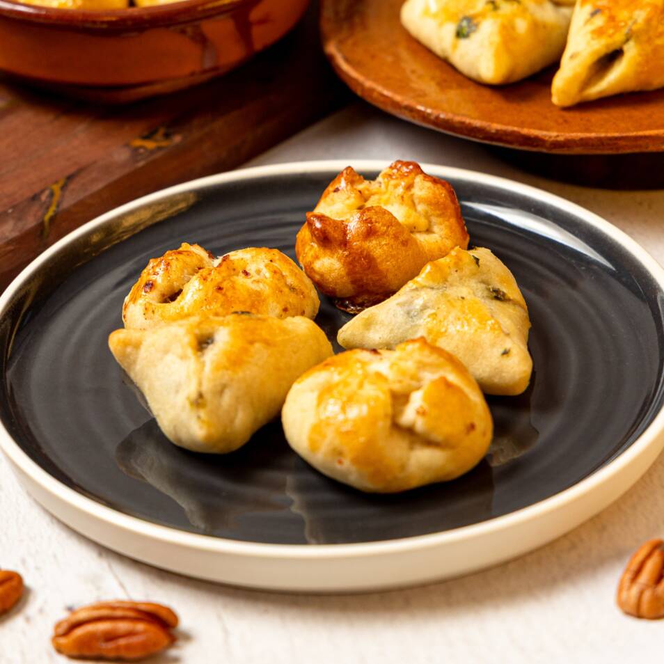 5 empanaditas rellenas de espinaca y nuez. Perfectas para compartir o botanear.
