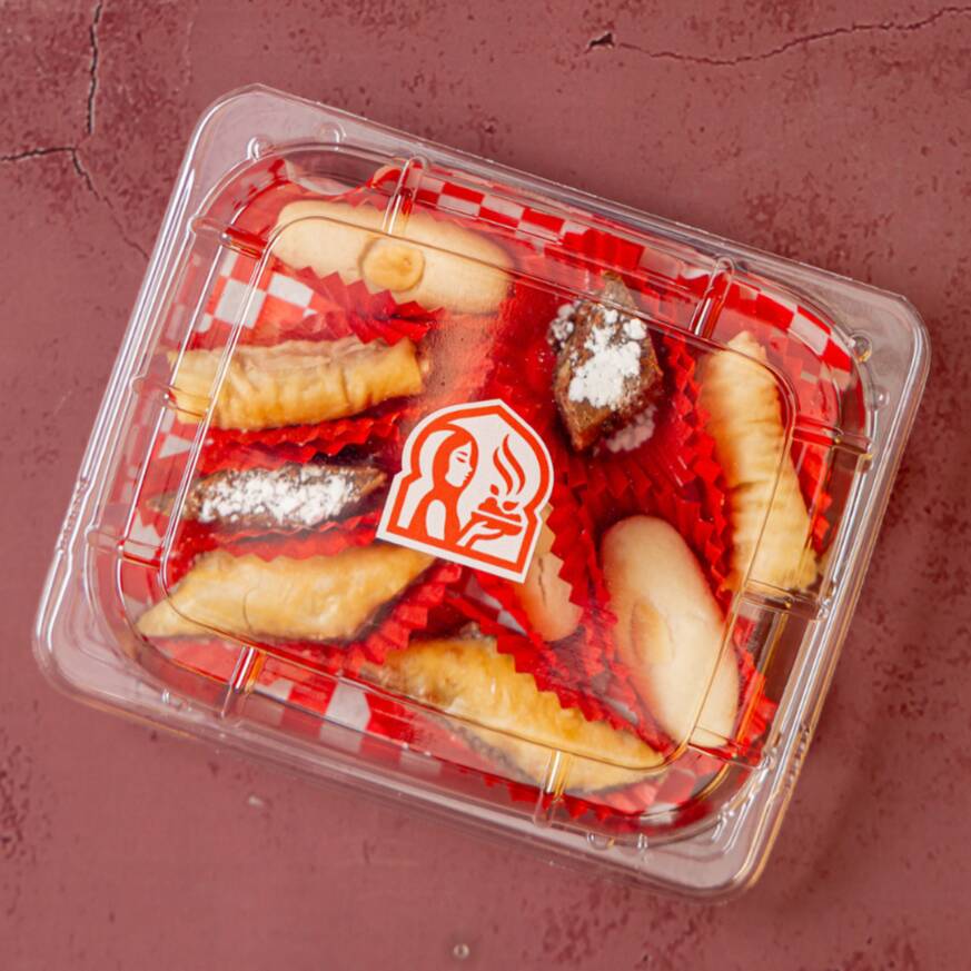 Tradicional dulce árabe hecho de pasta filo rellena de nuez y canela. Endulza tu día con esta delicia. Orden 1 pza.