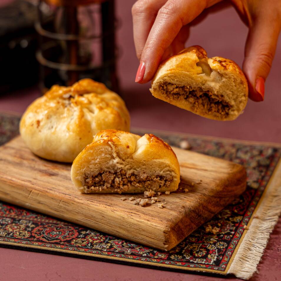Empanada árabe individual rellena de nuestro preparado especial de carne y piñón. No te la puedes perder. (1 pza)