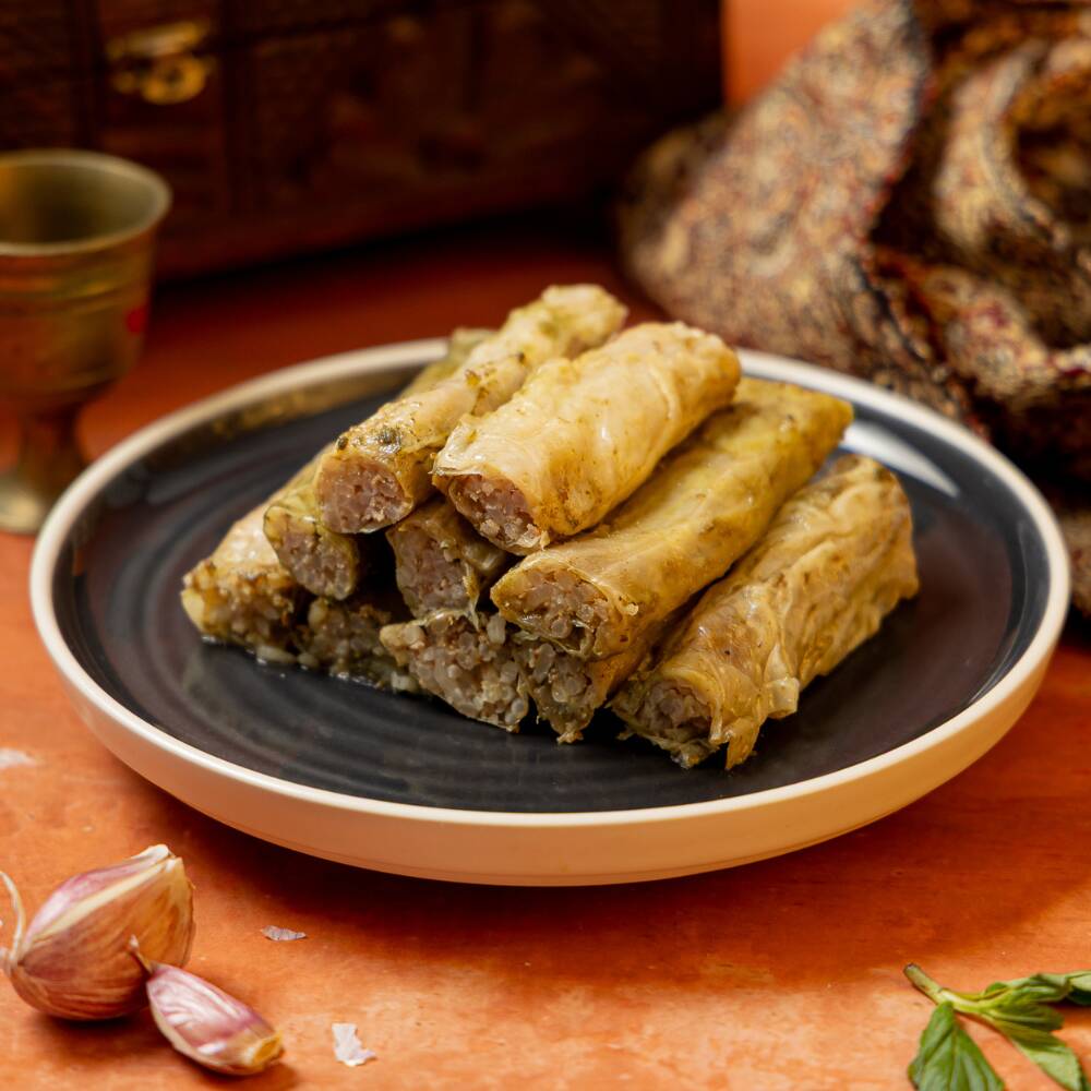 Hojas de col rellenas de carne y arroz, sazonadas con especias árabes. Orden de 5 pzas.