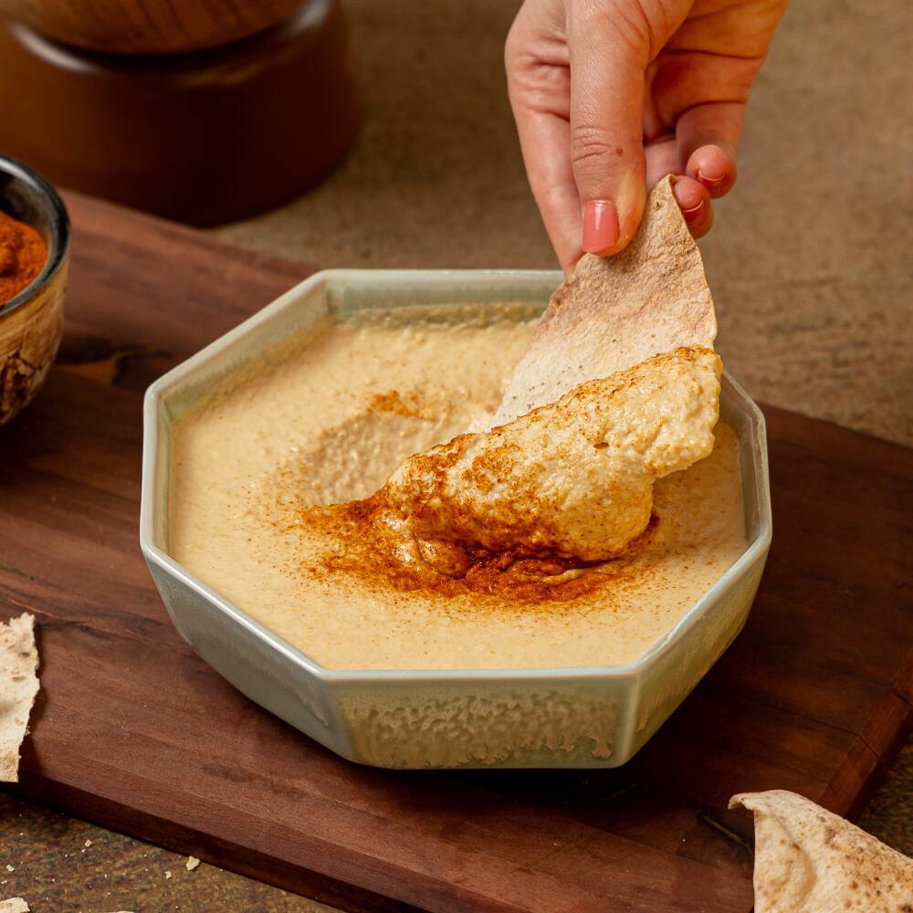 250 grs de garbanza molida y preparada con nuestra receta familiar, espolvoreada con paprika. Perfecta para acompañar todos tus platillos o como un snack que puedes acompañar con nuestra orden de pan tostado.