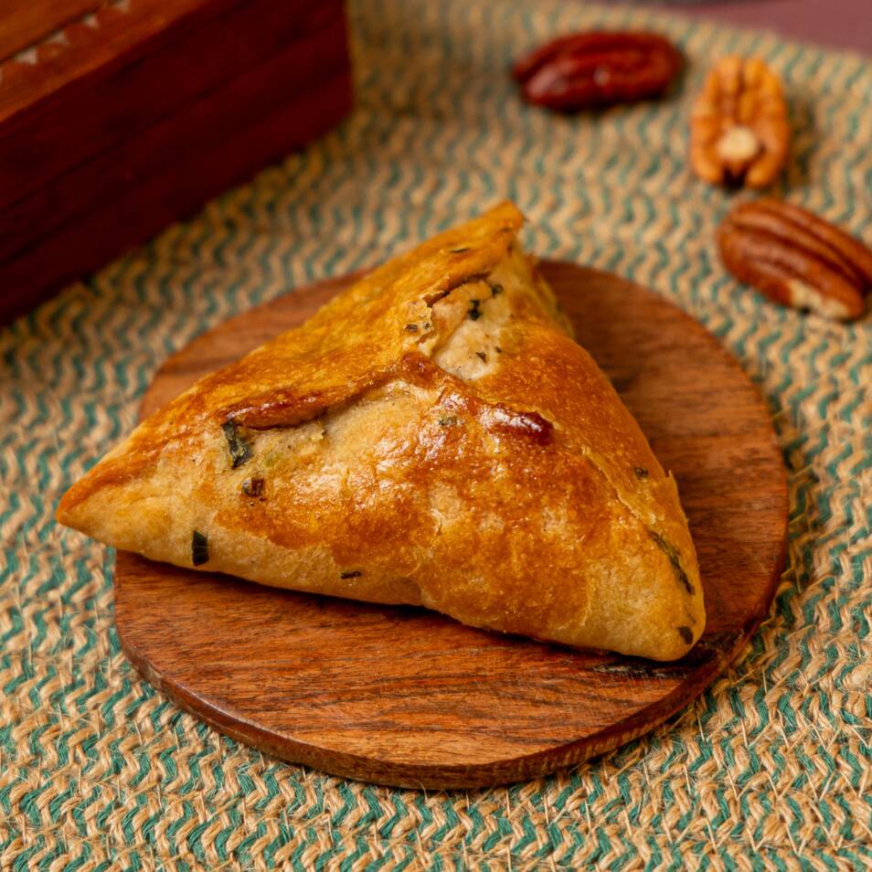 Suave empanada árabe individual rellena de espinaca y nuez. Es una opción muy nutritiva y de un sabor inigualable. (1 pza)