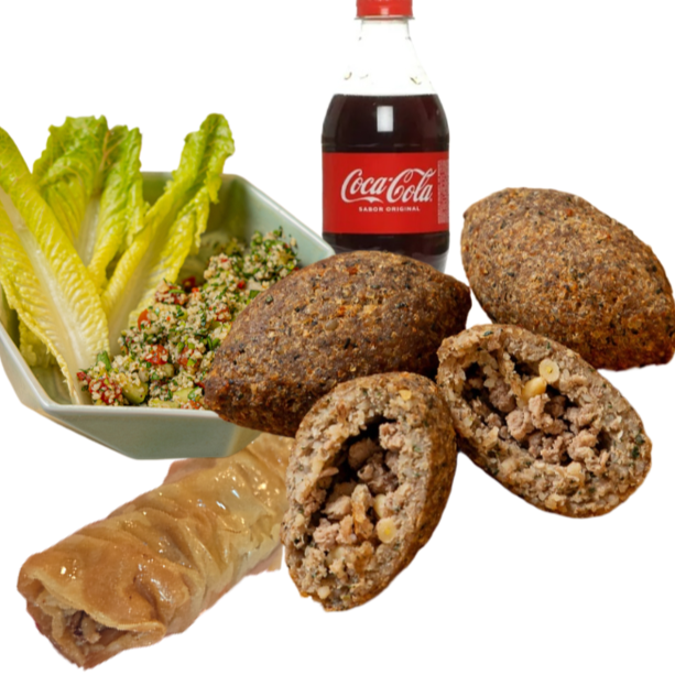 Kibbeh Árabe Bola Botanero*1 + Taboule Árabe Tradicional*1 + Dedo de Novia*1 + Coca Cola 600 ml*1