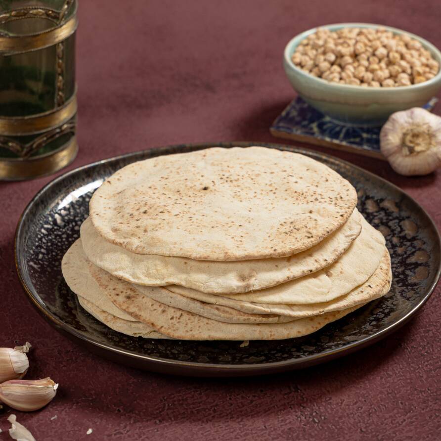 Pza de pan pita árabe ideal para mezze y kibbehs.