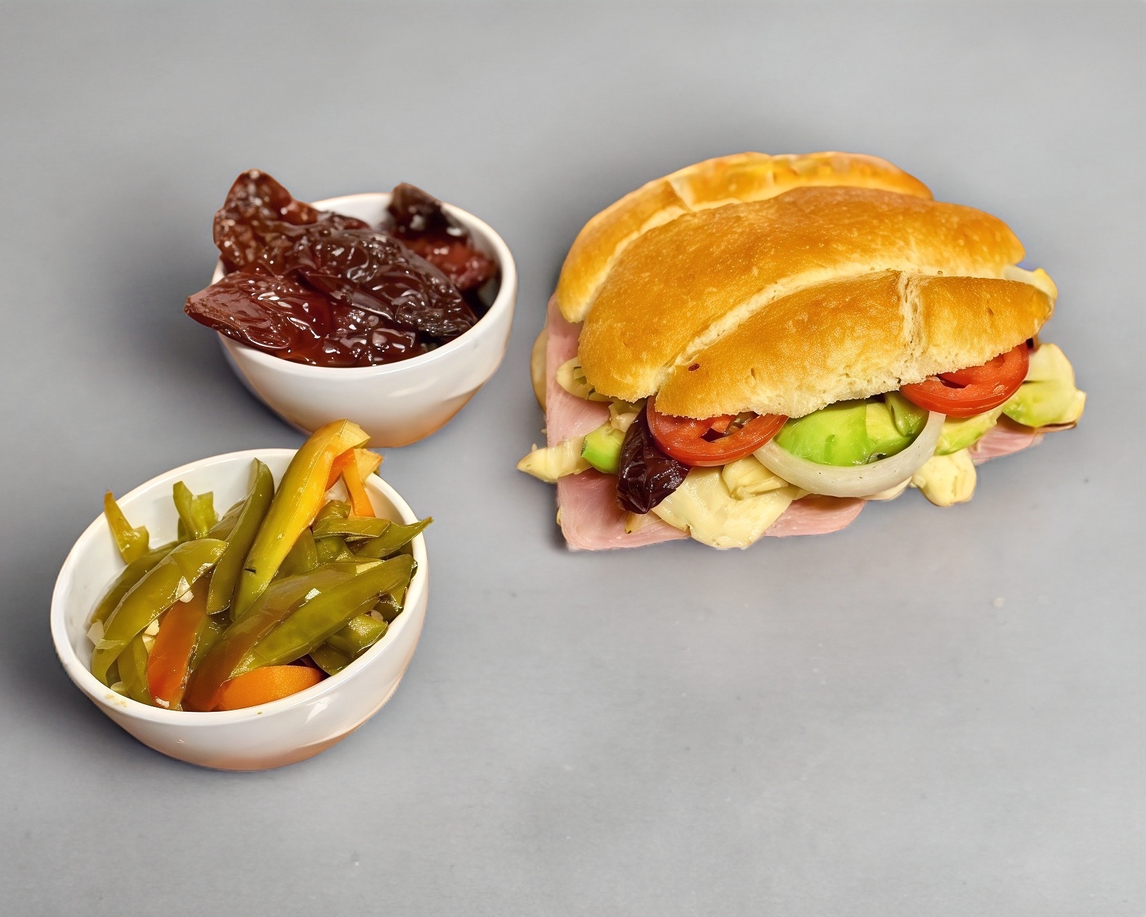 frijoles, jamon de pavo, quesillo fundido, picante,cebolla,jitomate y aguacate