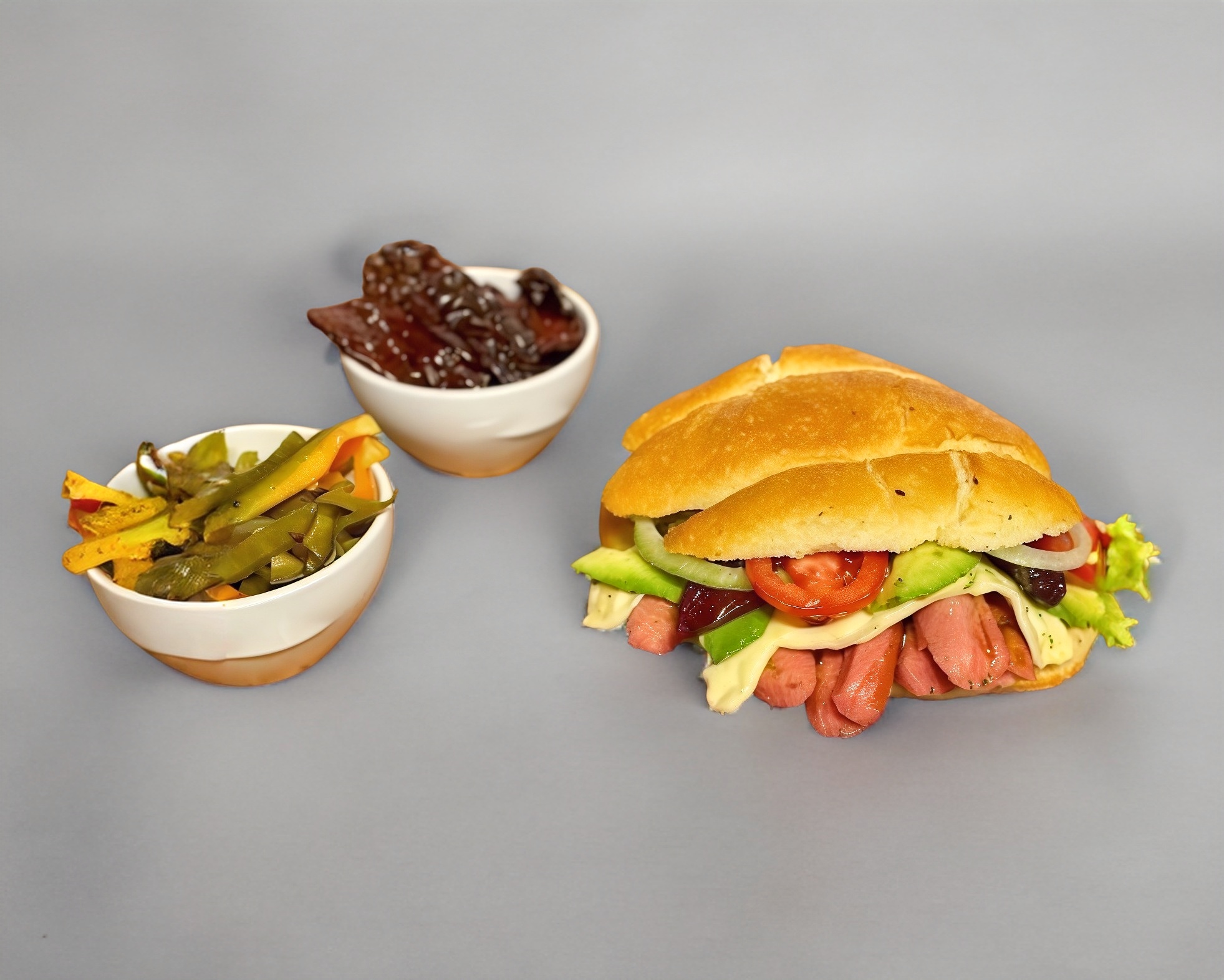 salchicha quesillo cebolla picante aguacate y papalo