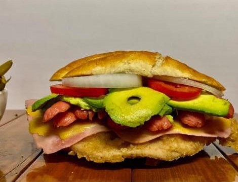 milanesa de puerco quesillo cebolla picante aguacate y papalo