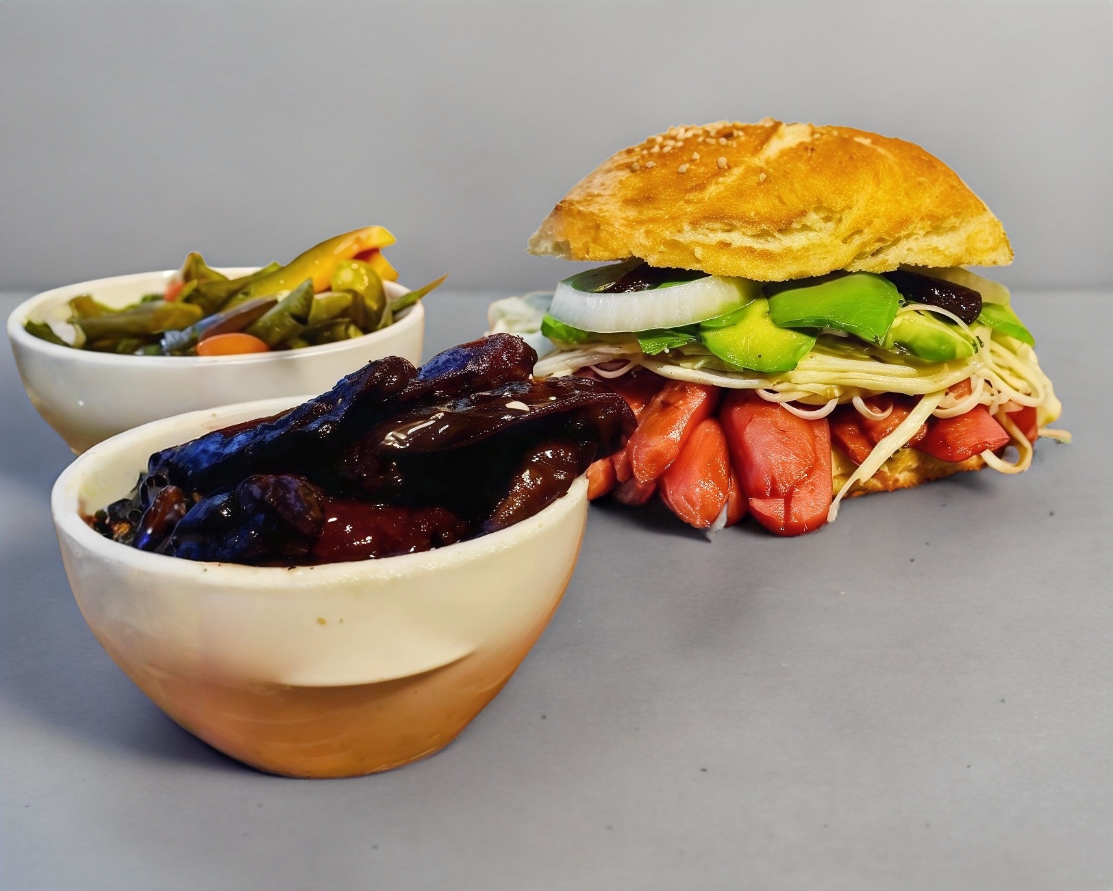 frijoles, milanesa de res, jamon, queso manchego, salchicha, cebolla, picante y aguacate
