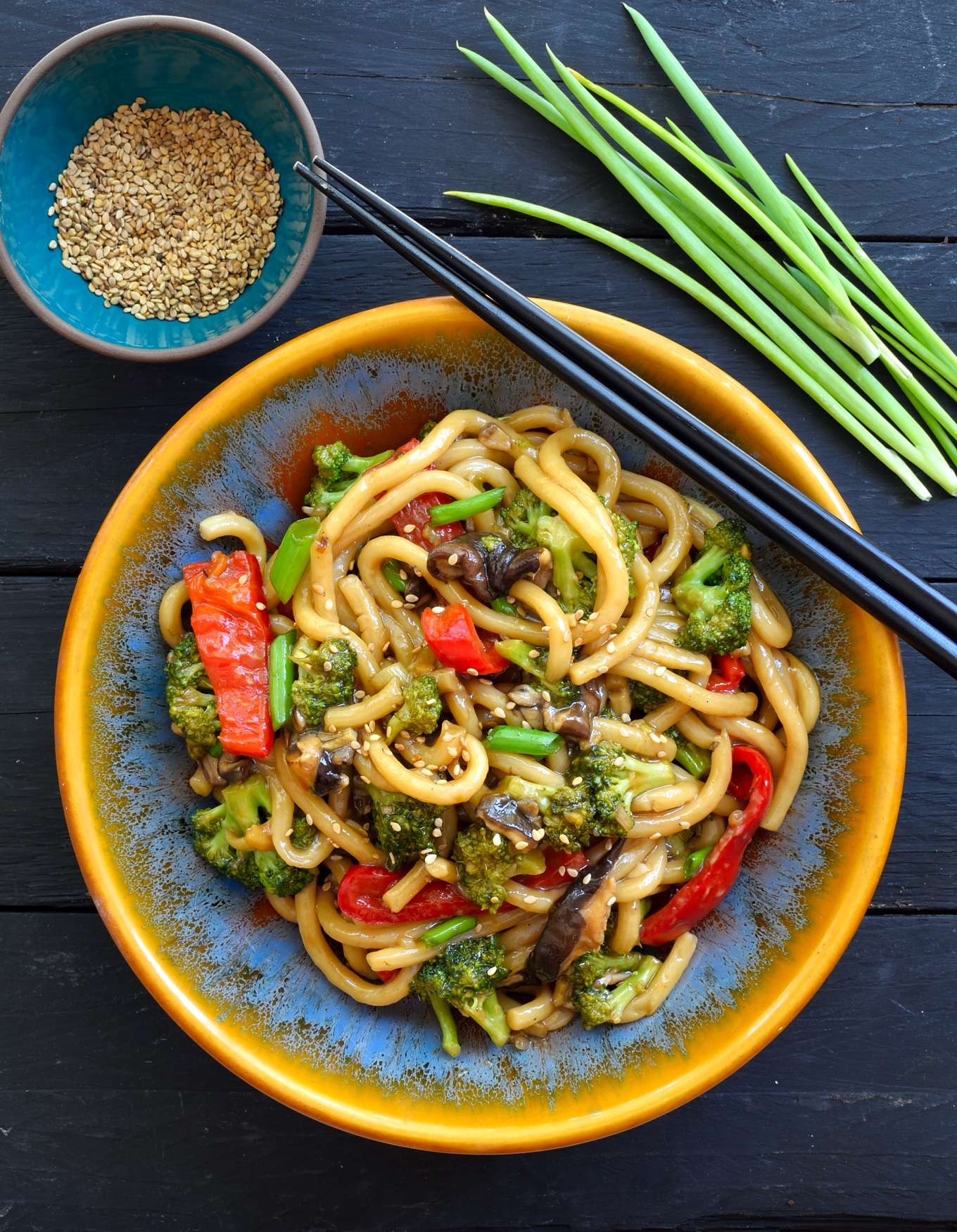 Pasta Udon con verduras, pollo frito, bañada en salsa a elegir (soya o teriyaki).